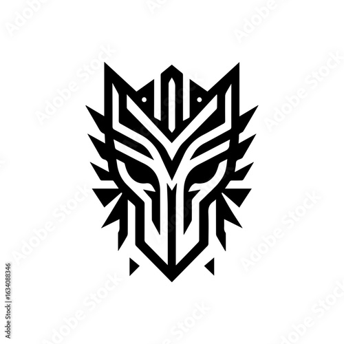 © chan, Obraz premium tribal mask for courage, with sharp lines and assertive geometry