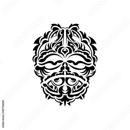 © Javvani, Fototapeta premium Tribal mask. Traditional totem symbol. Black tattoo in samoan style. Black and white color, flat style. Vector illustration.