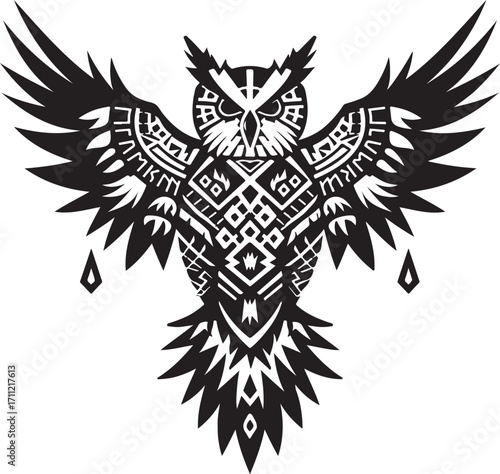 Obraz premium Tribal owl with open wings, mystical symbol art