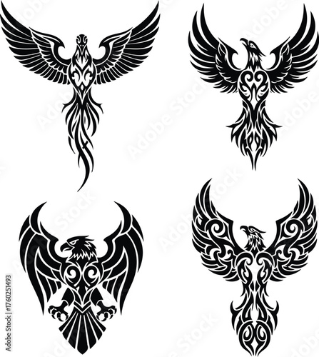 Fototapeta premium Tribal Phoenix Bird Tattoo Design Set