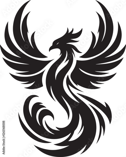 © Jamshadul, Obraz premium Tribal phoenix silhouette vector – bold flame bird design for tattoo, logo, and artistic projects.