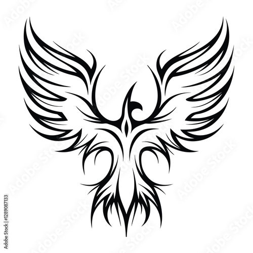 Fototapeta premium Tribal Phoenix Tattoo Design Symbol of Strength and Rebirth. Bold Black Tribal Phoenix Tattoo for Arm, Chest, or Back. Minimalist Phoenix Tattoo in Tribal Style.