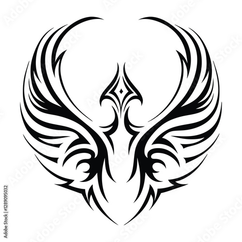 Fototapeta premium Tribal Phoenix Tattoo Design Symbol of Strength and Rebirth. Bold Black Tribal Phoenix Tattoo for Arm, Chest, or Back. Minimalist Phoenix Tattoo in Tribal Style.