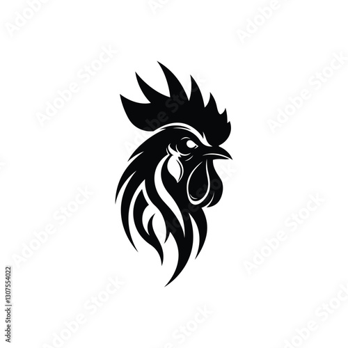 Obraz premium Tribal rooster illustration black and white silhouette logo