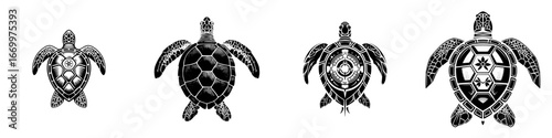 © Andrei, Fototapeta premium Tribal Sea Turtle Graphics Set, minimalist monochrome icons