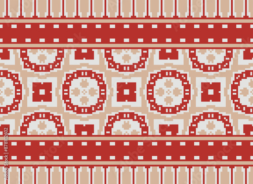 © Mr.T, Obraz premium Tribal striped seamless pattern. Aztec geometric black-white background. Can be used in fabric design for clothes, accessories, decorative paper, wrapping,
