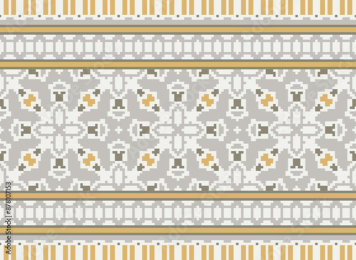 © Mr.T, Obraz premium Tribal striped seamless pattern. Aztec geometric black-white background. Can be used in fabric design for clothes, accessories, decorative paper, wrapping,