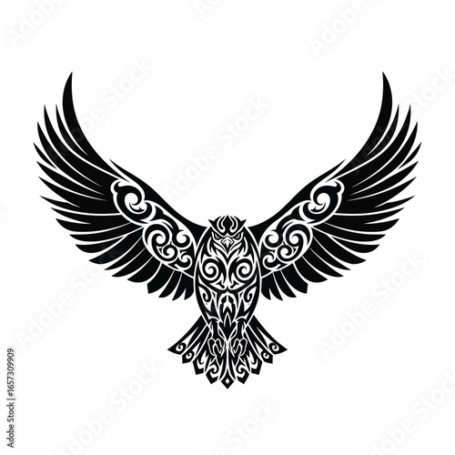 Obraz premium Tribal-style eagle design with wings outstretched, intricate detailing, black...