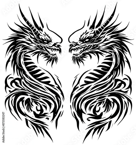 Obraz premium TRIBAL TATOO トライバル タトゥ 刺青 和柄 龍 Dragon