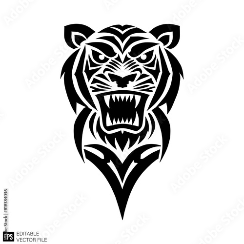 © Niken, Obraz premium tribal tiger tattoo head Clip Art Black and White Illustrations Graphic Design Elements Vector Silhouette
