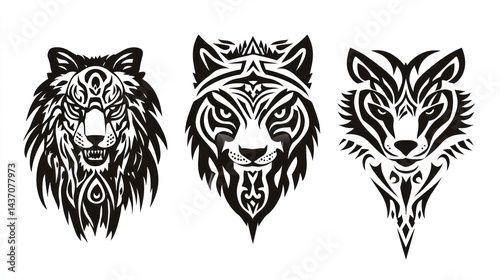 © joo, Obraz premium Tribal wolf tattoo designs; white background