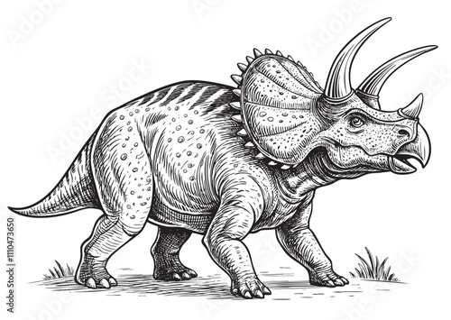 Obraz premium Triceratops dinosaur engraving vector illustration