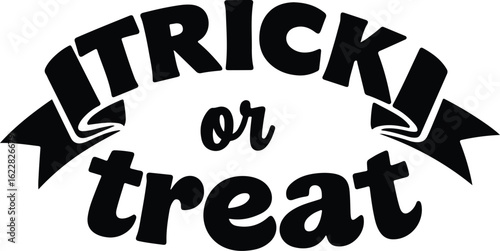 © threadory, Obraz premium Trick or Treat Halloween Sign with Bold Black Text on White Background