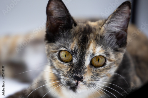 © Наталья Бирюкова, Obraz premium tricolor cat on a white background