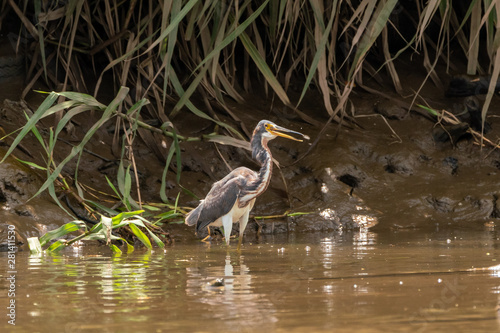 © Chris, Naklejka premium Tricolored Heron (Egretta tricolor) eating a shrimp in Costa Rica