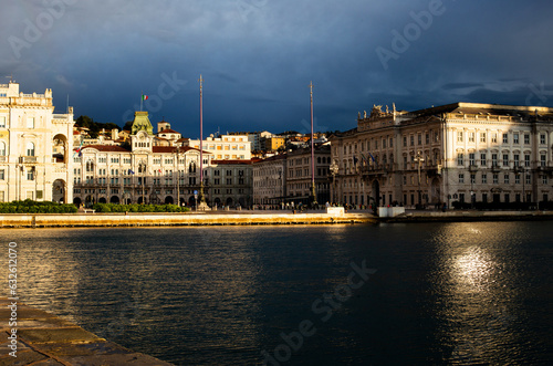 Obraz premium trieste seafront at sunset after heavy rain