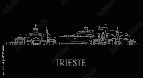 Obraz premium Trieste Skyline Italy Minimalist Black.