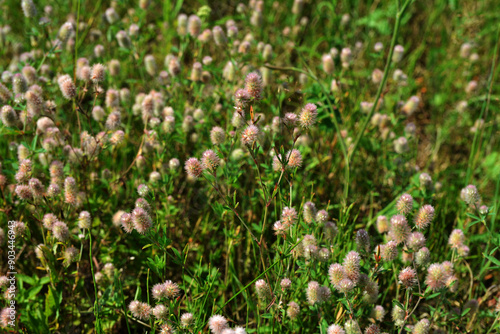 Obraz premium Trifolium arvense grows in the meadow among wild grasses
