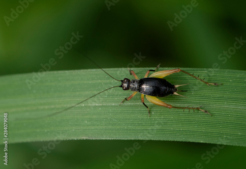 © tahir, Naklejka premium Trigonidiinae Cricket (Metioche sp) on green leaf