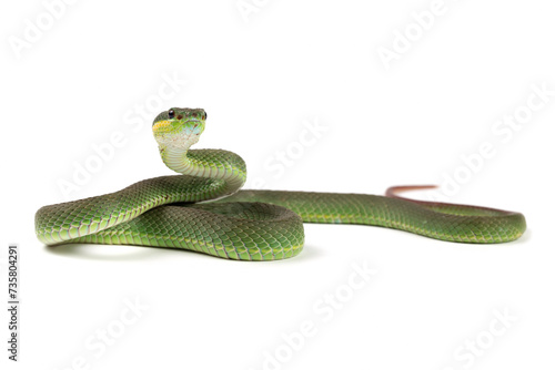 Obraz premium Trimeresurus Insularis closeup on isolated background, Indonesian viper snake...
