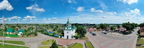 Fototapeta premium Trinity Church in the village of Mir from above. Orthodox Church. Korelichi...