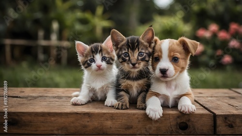 Obraz premium Trio mit Charme: Katze und Hunde auf Abenteuersuche