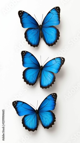 © Aofintarapak, Fototapeta premium Trio of Azure Blue Butterflies in Delicate Flight Elegant Insect Art Beautiful Winged Wonders