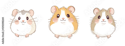 Obraz premium Trio of Cute Cartoon Hamsters on White Background