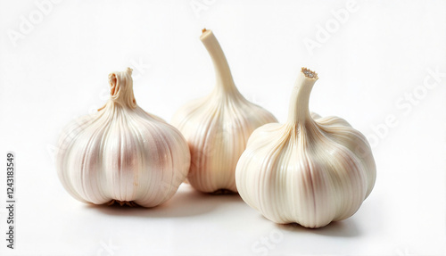 Obraz premium Trio of garlic bulbs with smooth and textured skin on a white background with...