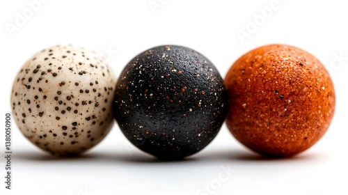 © bagus_, Obraz premium Trio of Speckled Marbles Cream with Black, and Rust.