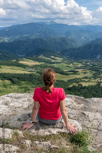 © Pinosub, Naklejka premium trip on the hills, landscape of the "Pietra di Bismantova" Reggio Emilia - Italy