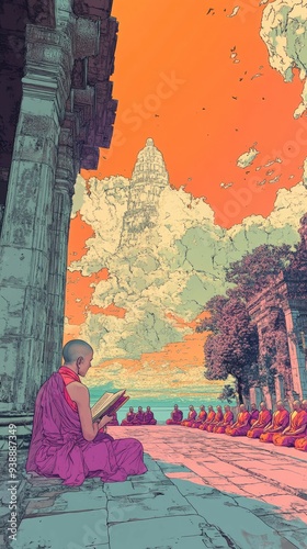 © Sidewaypics, Obraz premium Tripitaka Ceremonial Reading Buddhism Religion Spiritual Symbol