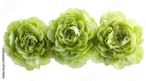 Fototapeta premium Triple green ranunculus: close-up of vibrant petals in bloom