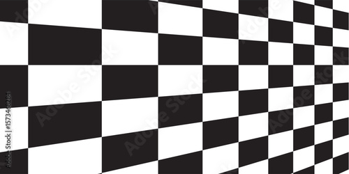 Fototapeta premium Trippy checkerboard background. Black and white retro psychedelic checkered wallpaper. Wavy groovy chessboard surface. Distorted and twisted geometric pattern. Abstract vector backdrop