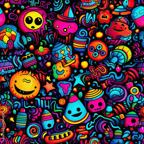© Roman, Obraz premium Trippy doodles colorful repeat pattern