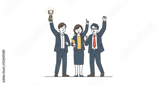 Obraz premium Triumphant Team: Celebrating Success with Trophy Illustration