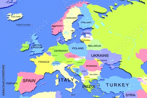 Obraz premium Trójwymiarowa mapa Europy