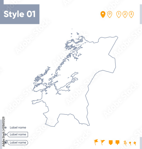 © Александр Филинков, Obraz premium Trondelag, Norway - stroke map isolated on white background. Outline map. Vector map
