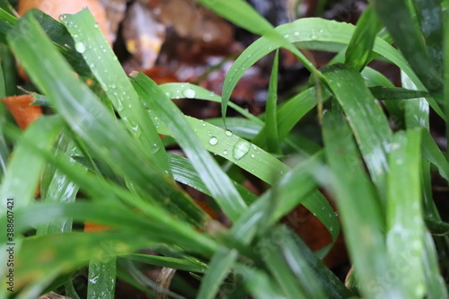 Obraz premium Tropfenbedecktes Gras