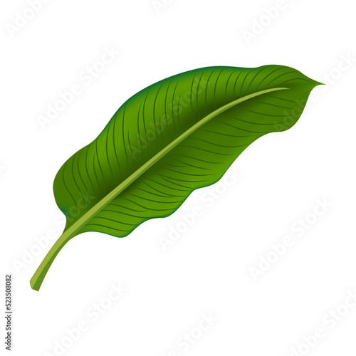© Bro Vector, Fototapeta premium Tropic leaf in cartoon style. Bright green exotic plants vector isolated on white background. Jungle foliage decoration