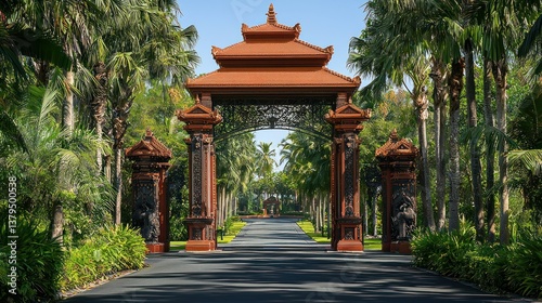 © KASANUN, Fototapeta premium Tropical Asian Gate Entrance, Luxury Resort