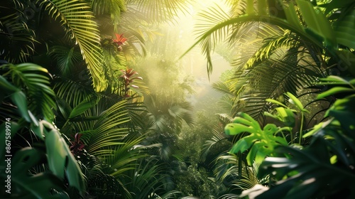 © bo, Obraz premium Tropical background green plant leaf South America forest jungle palm tree