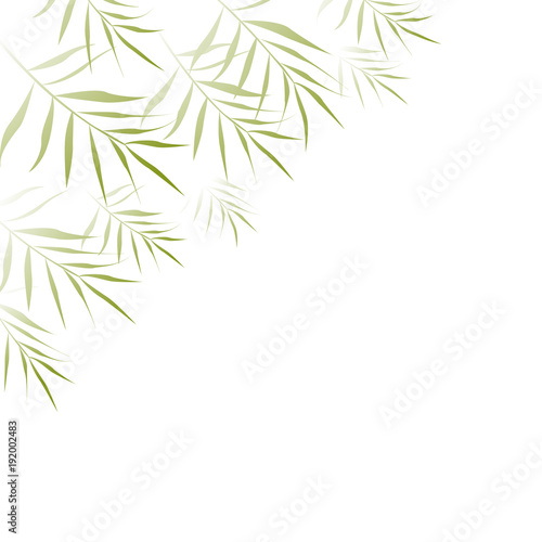 Fototapeta premium Tropical background. Palm leaves. Exotic. Frame. White. Green. Border.