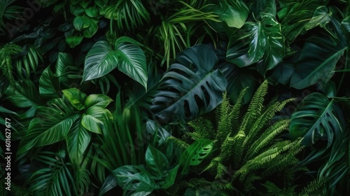 Fototapeta premium Tropical background with monstera leaves. Realistic illustration, Generative AI