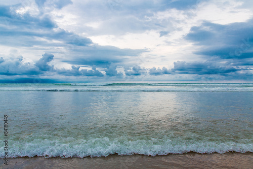 Obraz premium Tropical beach and beautiful sea. Blue sky with clouds in the ba