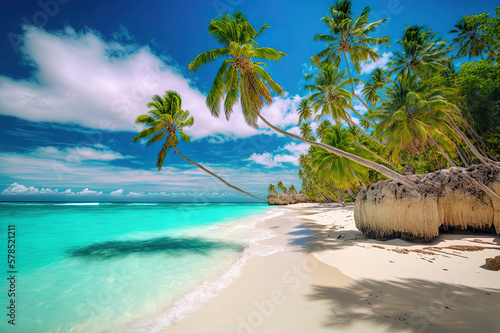 © Fernando, Obraz premium Tropical beach in Punta Cana, Dominican Republic. Palm trees on sandy island in the ocean.