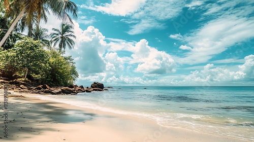 Fototapeta premium Tropical Beach Paradise. Beautiful Tropical Beach Scene. Vacation Destination.