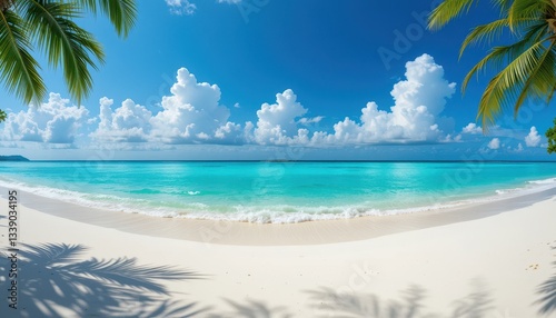 Fototapeta premium Tropical beach paradise maldives landscape photography bright sunlight aerial view serenity