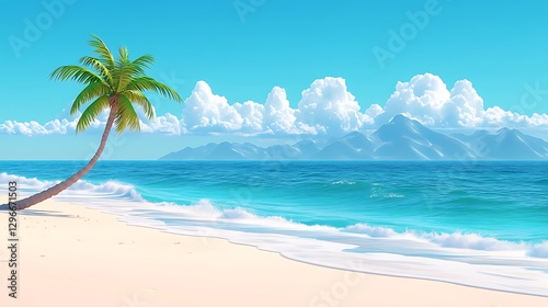 Obraz premium Tropical beach paradise, palm tree, ocean view