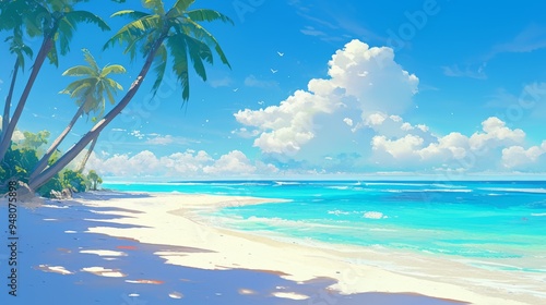 Obraz premium Tropical Beach Paradise White Sand Palm Trees Blue Ocean Sky